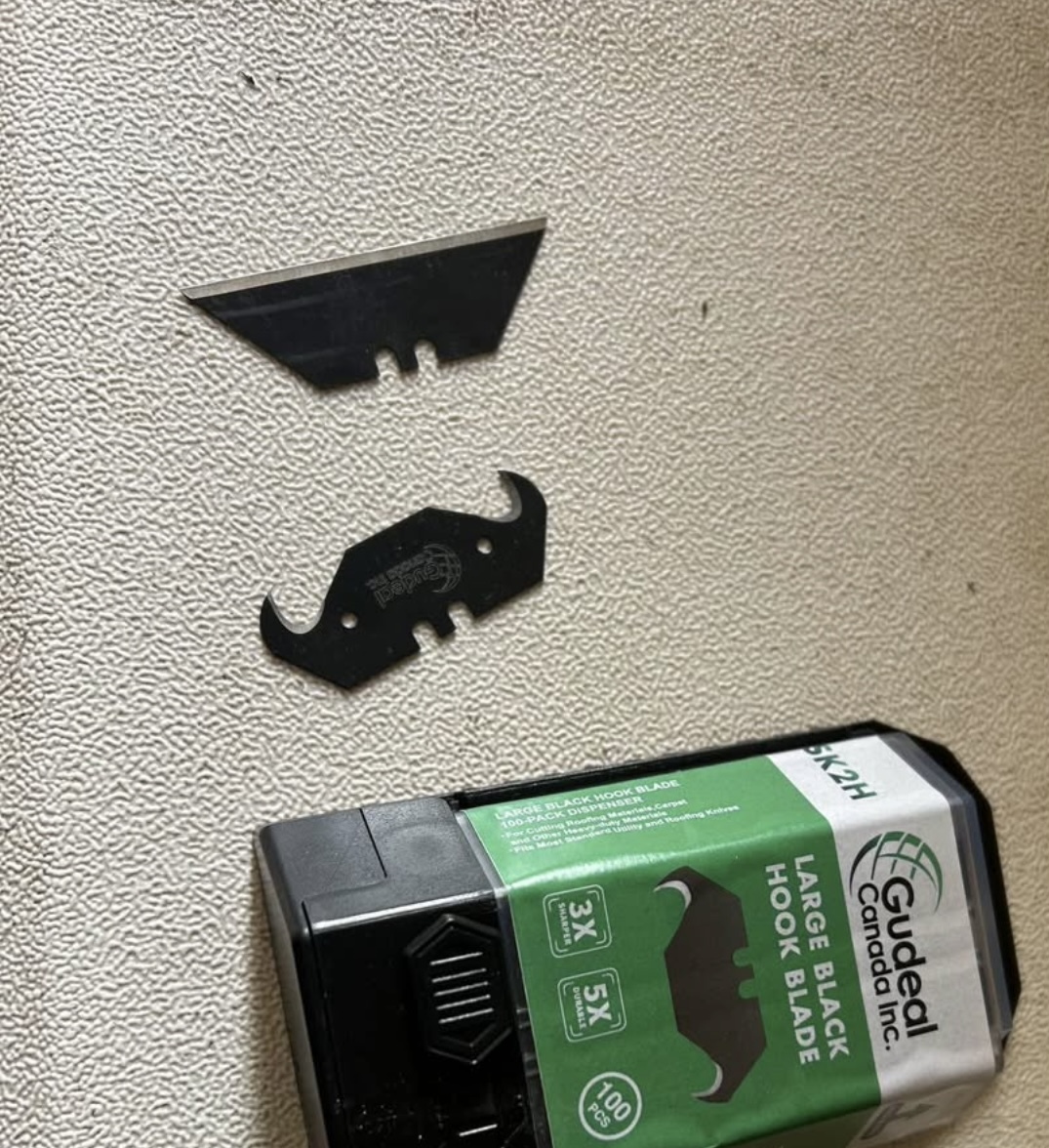 Sharp hook blades for roofing and construction applications.